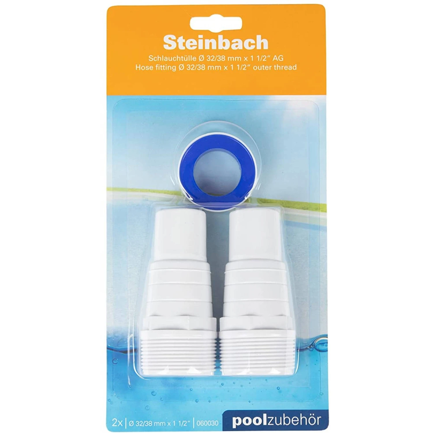 Doppelpack Schlauchtüllen für Schwimmbadschläuche Ø 32/38 mm x 1 ½“ Außengewinde, inklusive Teflonband.